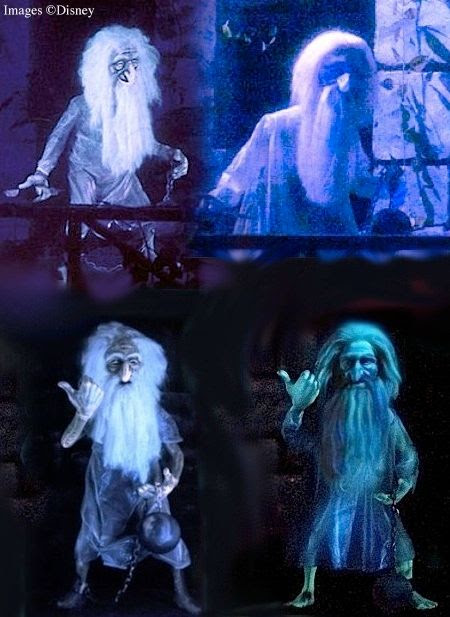 Seems like a pretty good match, doesn't it? Of course the "chain" detail is slightly different, but otherwise that sounds a lot like "Gus," as the little prisoner is known. ("Gus," "Ezra," and "Phineas" were names given to the hitchhikers by a veteran Cast Member at WDW, and they've stuck, climbing to the level of official Disney sanction.) Anyway, the description comes from an almost 2000-year-old ghost story,