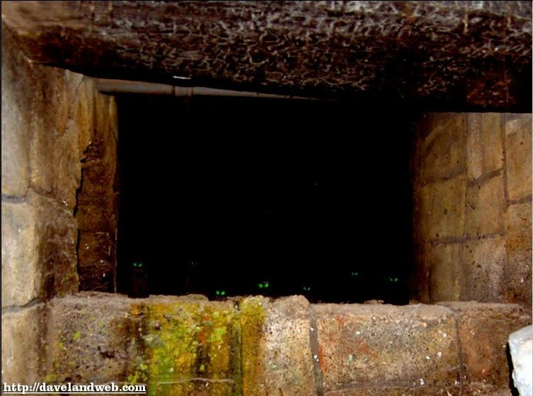 I haven't seen the effect in person, but I imagine that when it's operating properly and light levels are correct, it's an impressive illusion. I have to admit that I'm also positively disposed toward it because those eyes in the darkness are a new implementation of an old Yale Gracey effect from 1967. Some of you Eastern folks may not be aware of that fact. At DL, as the boats ascend the waterfall at the end of Pirates of the Caribbean, there are green rats' eyes winking at you in the darkness on your left. They've always been there.