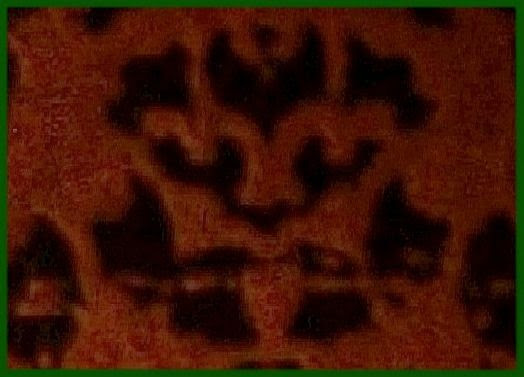 When the Imagineers were flipping through samples, don't you think they would have been drawn consciously or unconsciously to designs of the third kind discussed above, the kind that practically plop their hidden faces into your lap?  If you saw one of those designs in the Mansion, wouldn't you suspect that the choice was made precisely because that kind of design is starting to do what the COD paper already does?  Like the wainscot "skulls" and the coffin tapestry, "found" designs of that nature would go into that murky, "real or imagined" category.